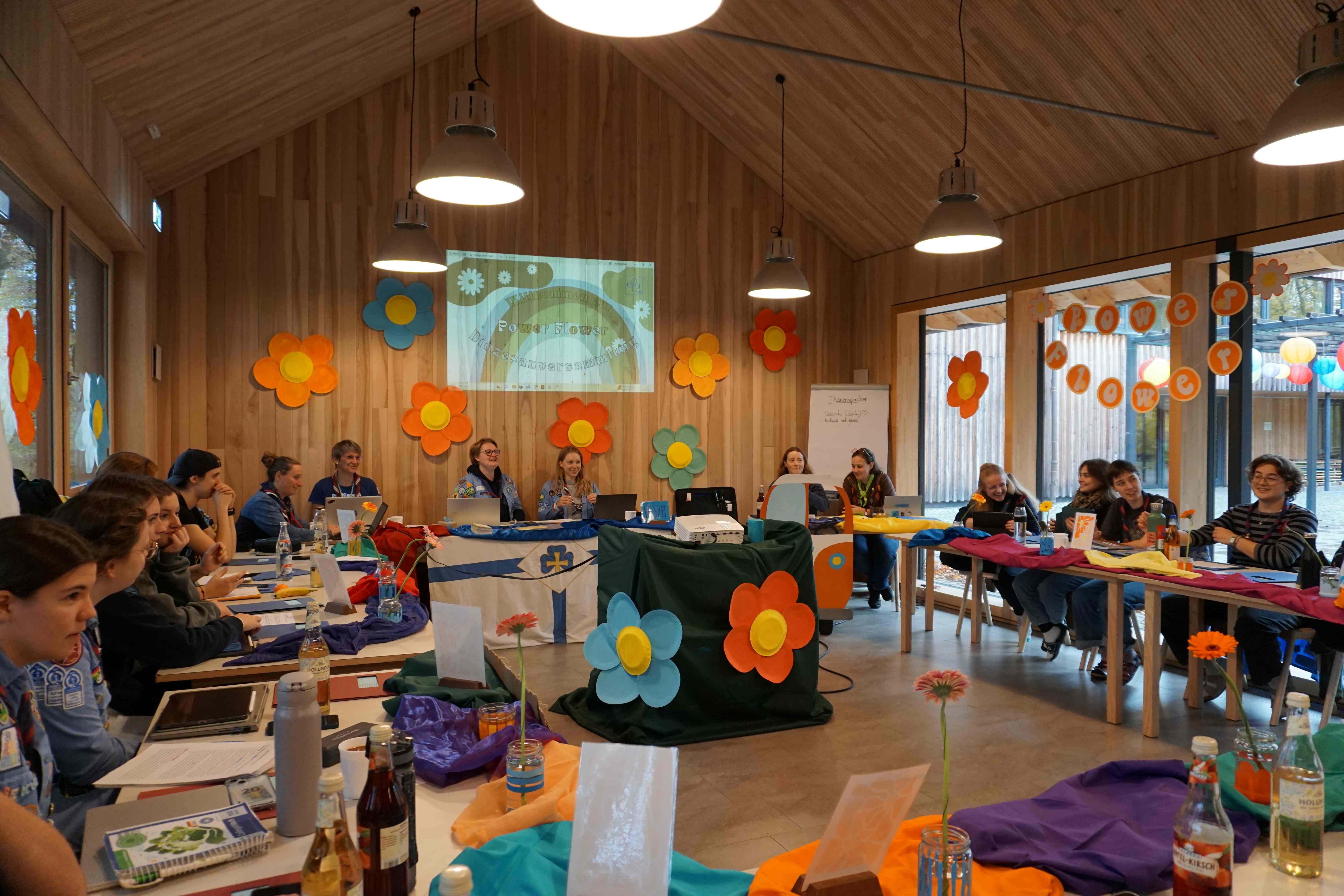Inhaltlich beschäftigte sich die diesjährige Diözesanveranstaltung mit dem Thema „Flower Power – Partizipation leben“. Ziel des Schwerpunktthema war es, Partizipation als Haltung zu verstehen und konkrete Methoden kennenzulernen, um Kinder und Jugendliche aktiv in Gruppenstunden und Verbandstätigkeiten einzubinden.