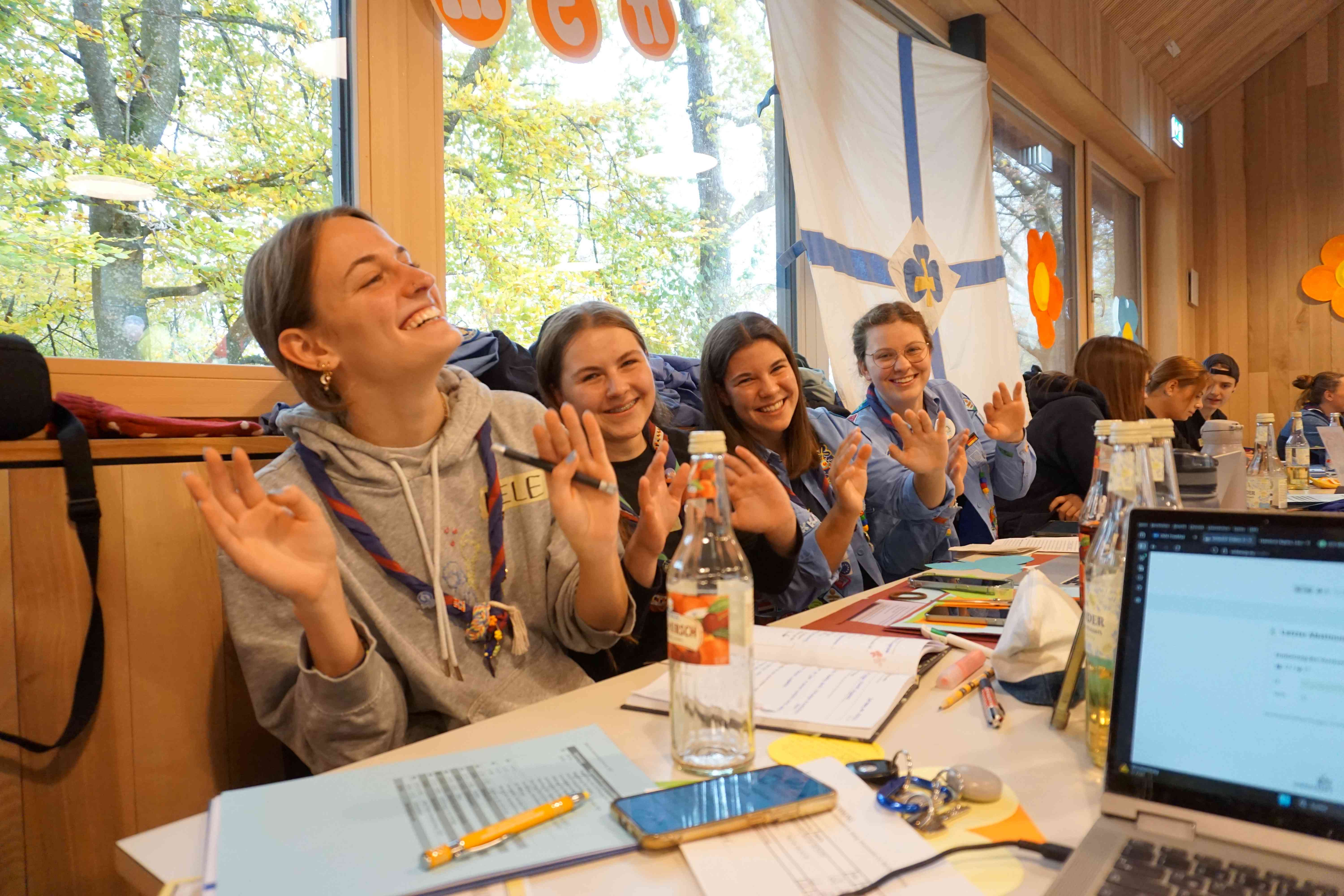 • Als Delegierte auf Bundesebene wurden  Johanna M., Verena M., Emely W. und Rebekka G., als Delegierte für die Landesleitung Kathi W. und Marie-Theres F. gewählt.